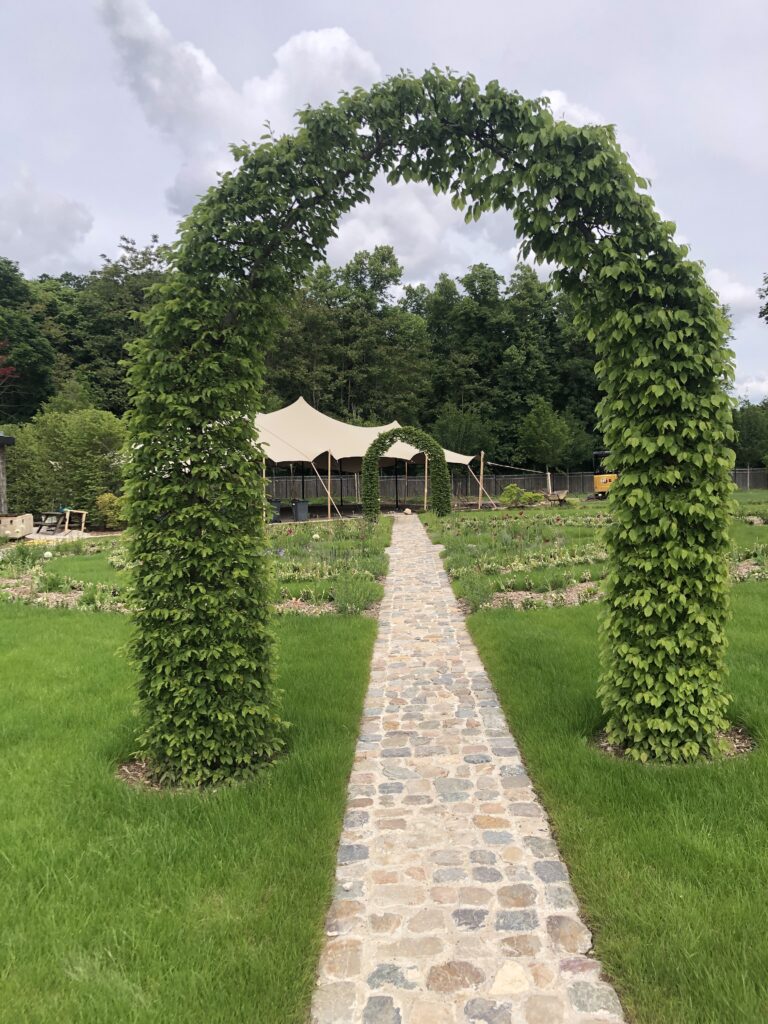 On peut venir respirer lors de visites. À l’origine, le pavillon de chasse était ouvert sur la forêt. « Nous avons voulu respecté cet esprit arboré » note Emmanuel Basse. Résultat : « une prairie libre avec notamment des millepertuis ou encore du chanvre. L’allée historique voisine les chênes tandis qu’une double rangée d’arbres a été plantée en charmes ».