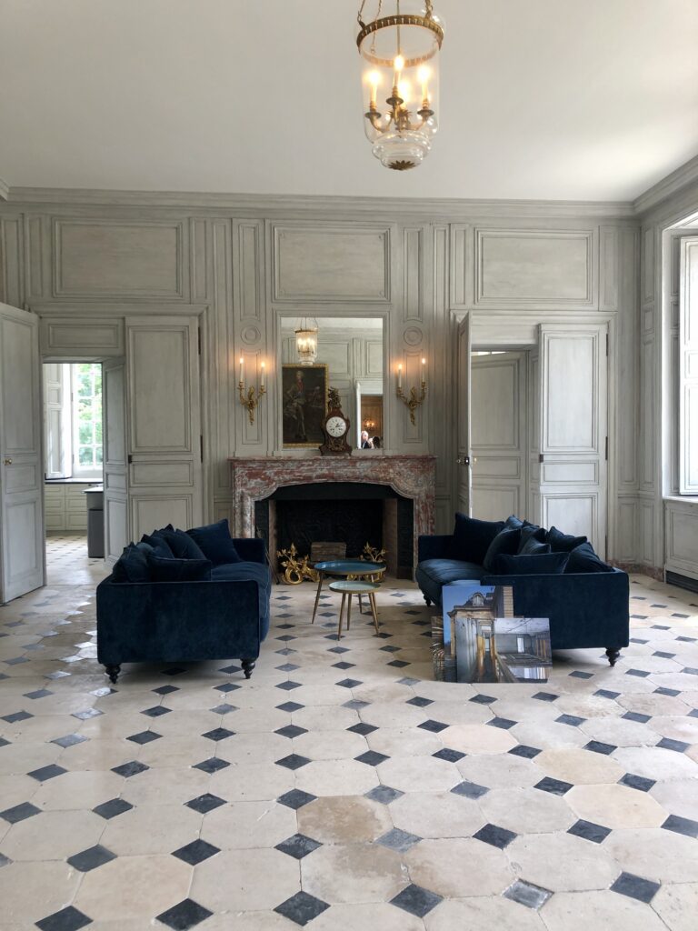 « Le bâtiment était au bord de l’effondrement, la restauration a failli ne pas pouvoir se faire » estiment les propriétaires. Elle a concerné le salon octogonal et ses 8 mètres d’un plafond rongé par les nuisibles. Un salon aux boiseries du XVIIe siècle en chêne, aux fenêtres vieilles de 250 ans, à la cheminée de marbre « rouge du Languedoc » originaire du Grand Trianon où trône un buste de Louis XV. Ensuite, le salon du débotté où les plinthes reprennent la couleur du marbre de la cheminée. Des sofas accueillent désormais les visiteurs avec ou sans bottes.