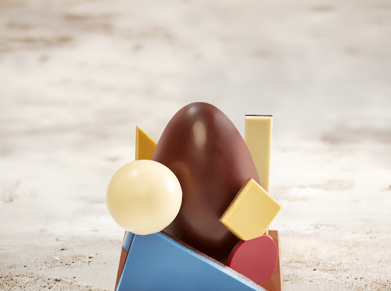 Pour ses 50 ans, la maison parisienne célèbre l’alliance entre art et artisanat avec une collection inspirée du mouvement Bauhaus. Sphères, cubes, triangles et demi-cercles s’assemblent autour du symbole de l’œuf en compositions sculpturales déclinées en trois formats. Les couleurs primaires (rouge, jaune, bleu) sont obtenues exclusivement avec des colorants alimentaires naturels, et les chocolats proviennent de filières de cacao durables. Un objet d’art éphémère, graphique et contemporain, aussi beau que savoureux.