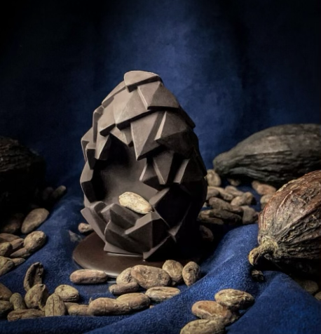 À Lamastre, en Ardèche, Yann Maritaud signe une pièce unique : un impressionnant œuf de dragon en cacao cru bio 75 %, enrichi d’éclats et fèves de cacao, décoré avec colorants naturels. Certifié Nature & Progrès, cette création intense et pure incarne l’engagement éthique maximal et une esthétique sculpturale puissante. Pour les amateurs de chocolat brut, authentique et engagé.