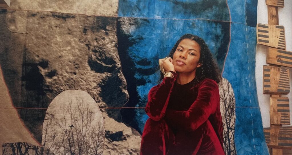 Art Zohra Opoku Anubis indigo. À la Galerie Mariane Ibrahim, l’artiste déploie une œuvre où le portrait voilé de son fils dialogue avec Anubis. Une méditation cosmique sur la maternité, la renaissance et les crépuscules sénégalais